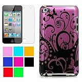 Durable Two Piece Front and Back Protective Hard Shell Crystal Cover Case for Apple iPod Touch 4th Generation + Clear Screen Protector for Apple iPod Touch 4th Generation , Purple Swirl