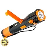 Emergency Flashlight - Rechargeable Hand Crank Flashlight and USB Cell Phone Charger - Window Breaker - Seat Belt Cutter - Waterproof