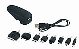 - Fits most phones/MP3 players. Includes eight adapters that fit iPhone, Blackberry, Samsung, LG, Sony/Ericson and Motorola. Flip up/out AC plug. 0.5m charging cable. Input voltage: AC 110-240V / DC 12-24V.