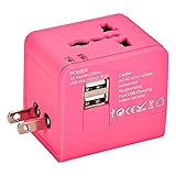 Mudder® US UK EU AU Universal All In One International Travel Power Plug Adapter Charger With 2 Port 1A USB for Cell Phone (Pink)